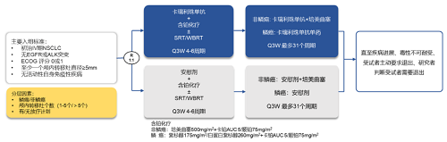 主要研究终点:研究者评估(依据RECIST 1.1标准)的颅内无进展生存期(iPFS)和无进展生存期(PFS),次要研究终点:颅内客观缓解率(iORR)、客观缓解率(ORR)、颅内缓解持续时间(iDoR)、缓解持续时间(DoR)、总生存期(OS)、安全性、认知功能及生活质量评估。